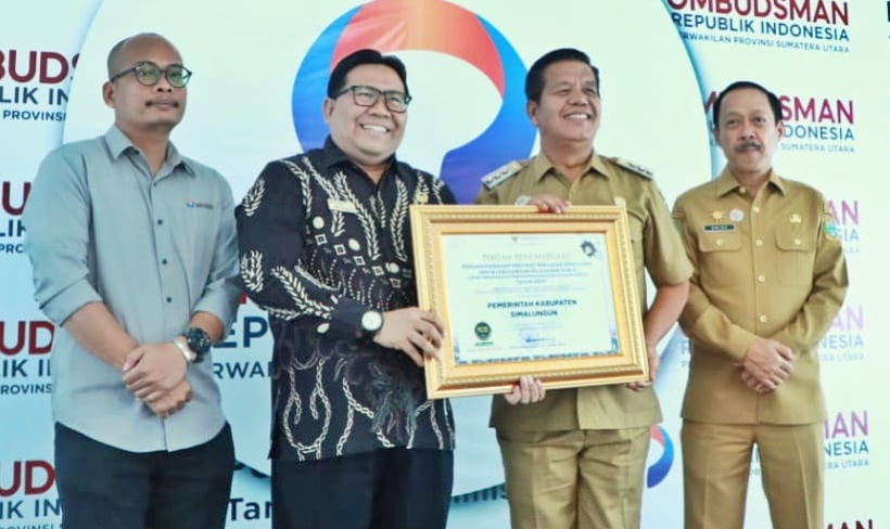 Piagam penghargaan tersebut langsung diterima oleh Bupati Simalungun Radiapoh Hasiholan Sinaga dari Ombudsman RI yang di serahkan oleh Ketua Ombudsman RI Perwakilan Prov. Sumut Dadan S Suharmawijaya, di Kantor Ombudsman Perwakilan Sumut, Medan, Selasa (23/1/2024).