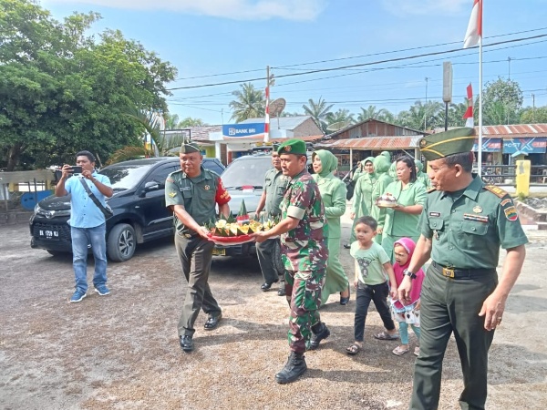 Kapolsek Bosar Maligas, AKP Restuadi, SH, bersama personil menyambut hangat kedatangan rombongan Danramil.