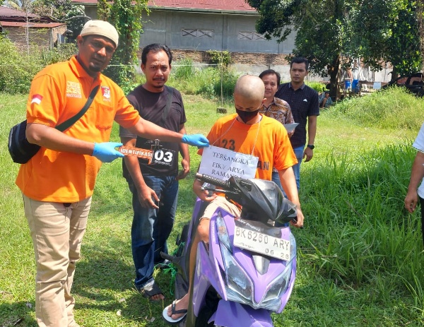 Rekonstruksi dengan 19 adegan menggambarkan tindakan kedua tersangka, menghilangkan nyawa bayi hasil hubungan gelap mereka. Setelah AS melahirkan tanpa bantuan, bayi yang baru lahir itu dimasukkan ke dalam jok sepeda motor oleh kedua tersangka.