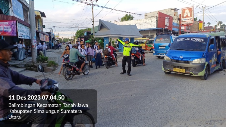 SIMALUNGUN (mimbarsumut.com) – Sebagai upaya meningkatkan kenyamanan dan keamanan para pelajar yang berangkat ke sekolah, Kepolisian Sektor (Polsek) Tanah Jawa melaksanakan kegiatan pengaturan lalu lintas (Gatur Lalin) di simpang tangsi Nagori Balimbingan, Kecamatan Tanah Jawa, Kabupaten Simalungun, Senin (15/12/2023).