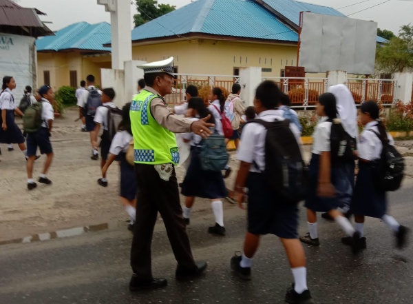 SIMALUNGUN (mimbarsumut.com) – Polsek Tanah Jawa resor Simalungun melakukan pengamanan dan pengaturan lalu lintas (gatur lalin) pagi hari, di depan SMP Negeri 2, Nagori Balimbingan, Kecamatan Tanah Jawa, Kabupaten Simalungun.