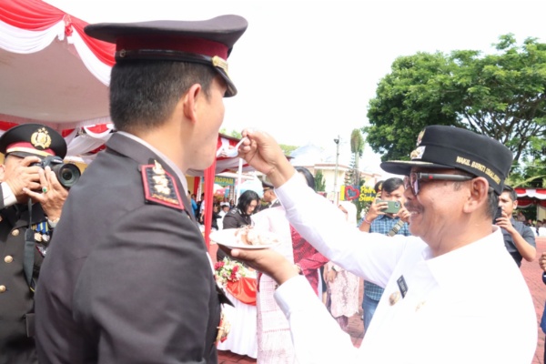 Kapolres Simalungun AKBP Ronald Fredy C Sipayung, bersama undangan yang hadir antara lain, wakil Bupati Simalungun H. Zony Waldi, Danrindam I/BB Kol Inf Charles B P Sagala, Dandim 0207/SML Letkol Inf Hadrianus Yossy, Ketua DPRD Simalungun Timbul J. Sibarani dan Kepala Kejaksaan Negeri Simalungun Irfan Hergianto.