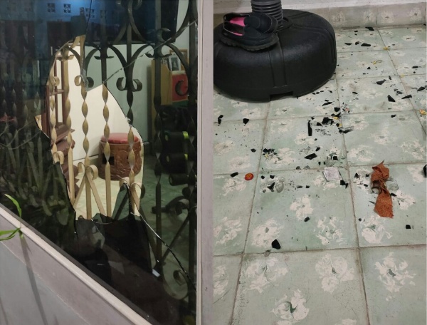 Lemparan bom molotov tersebut juga mengenai jendela kaca rumahnya yang ikut pecah.