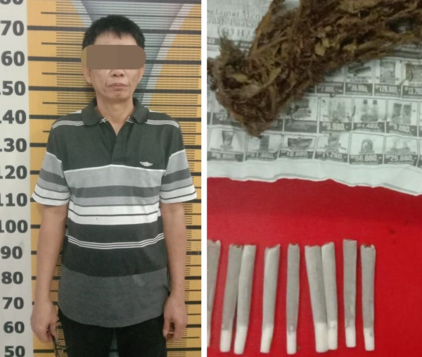 Selain itu,9 batang rokok warna putih yang di dalamnya daun, biji, ranting kering diduga narkotika jenis ganja berat (Brutto) 10,89 gram dan berat bersih (Netto) 9,63 gram.