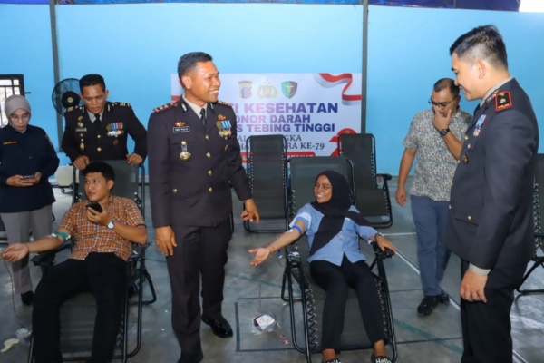 “Kegiatan ini merupakan bagian dari rangkaian Hari Bhayangkara ke-79, sekaligus bentuk kontribusi Polres Tebing Tinggi dalam membantu ketersediaan stok darah,” ujar Kapolres.