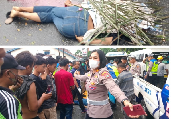 TEBINGTINGGI (mimbarsumut.com) – Seorang ibu rumah tangga (IRT) Silva Sari (36) warga Jalan Cempaka Kel. Tebingtinggi Lama, Kec. Tebingtinggi Kota, Kota Tebingtinggi, Selasa (04/07/2023) tewas ditabrak truk di Jalan Dr Sutoyo Lik V Kel Rambung Kec Tebingtinggi Kota, Kota Tebingtinggi.