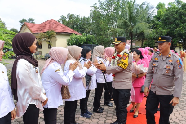 Rombongan Kapolres disambut Kapolsek Padang Hulu AKP Marolop Samosir, beserta Ketua Bhayangkari Ranting Padang Hulu, Ny. Cica Marolop Samosir.