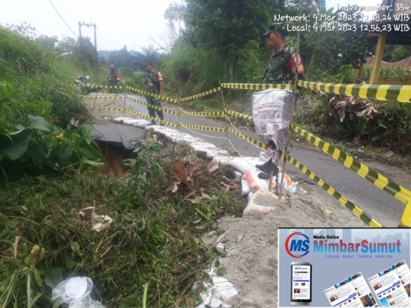 TAPUT (mimbarsumut.com) – Koramil 20 / Pangaribuan Kodim 0210/TU, turun langsung ke Desa Silantom Julu Dusun Simatupang, Kab. Tapanuli Utara untuk melihat kondisi jalan lintas Pangaribuan Sipirok yang amblas, Kamis (09/03/2023).