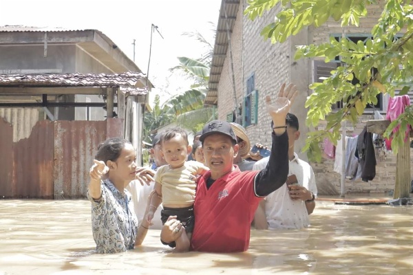 Ketika turun ke lokasi banjir Pajal Inpres Kelurahan Badak Bejuang, turut bersama pasangan IDAMAN yakni calon wakil Gubernur Sumatera Utara Hasan Basri Sagala.