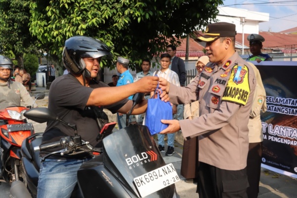 Kapolres Pematangsiantar AKBP Yogen Heroes Baruno mengatakan pembagian takjil tersebut dalam rangka ops Keselamatan Toba 2024 kepada pengendara yang dinyatakan lengkap baik dengan surat suratnya.