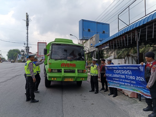 Kasatgas III Preventif Ipda Andi didampingi Kasubsatgas Turjagwali Ipda HST. Purba memimpin pelaksanaan Operasi Keselamatan Toba 2024, yang digelar secara serentak dijajaran Polda Sumut, Selasa (19/03/24).