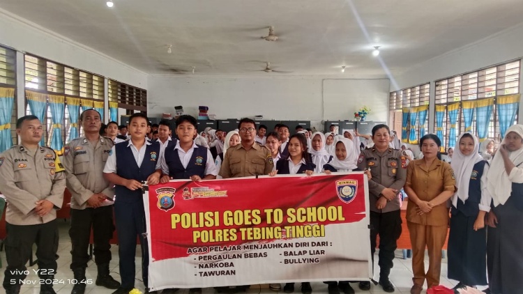 TEBINGTINGGI (mimbarsumut.com) – Polres Tebingtinggi melalui Sat Binmas melaksanakan kegiatan Police Goes to School di SMP Negeri 7, Jalan Syech Beringin Kota Tebingtinggi.