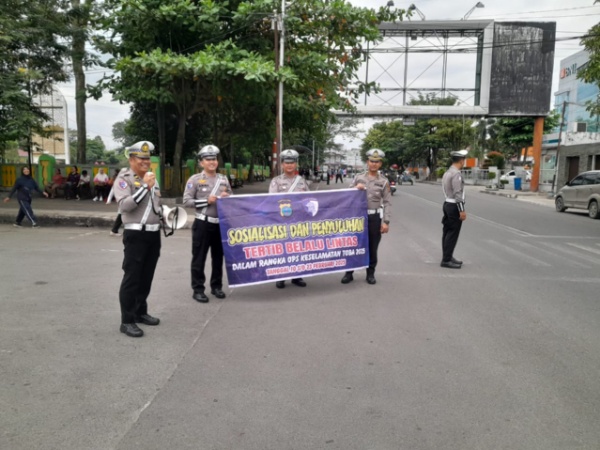 Dalam rangka Operasi Keselamatan Toba 2025, Satlantas Polres Tebingtinggi menggelar sosialisasi keselamatan berkendara, tertib berlalu lintas, diwarnai senam sehat bersama di depan halaman Bank Sumut Syariah, Jalan Sutomo Kota Tebingtinggi, Minggu (16/2/2025).