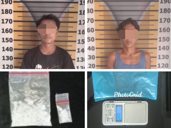Dari tangan kedu pelaku ditemukan barang bukti 2 bungkus plastik transparan berisikan serbuk kristal diduga Narkotika jenis sabu dengan berat kotor 3,21 gram dan berat bersih 2, 66 gram dan 1 timbangan digital.