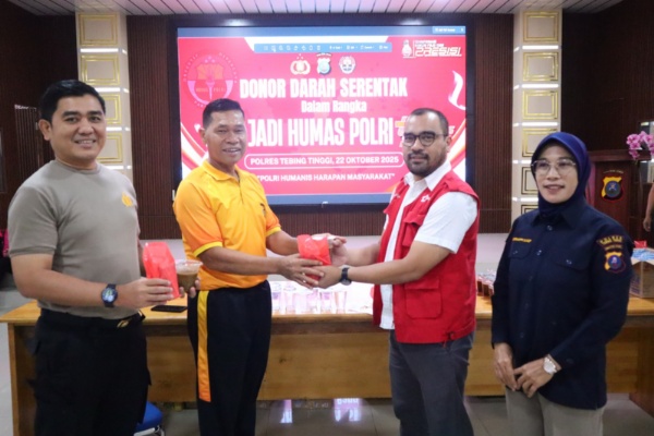 TEBINGTINGGI (mimbarsumut.com) – Dalam rangka memperingati Hari Jadi Humas Polri ke 74, Polres Tebingtinggi melaksanakan kegiatan Donor Darah Serentak yang mengusung tema Polri Humanis Harapan Masyarakat. Kegiatan ini dipimpin langsung