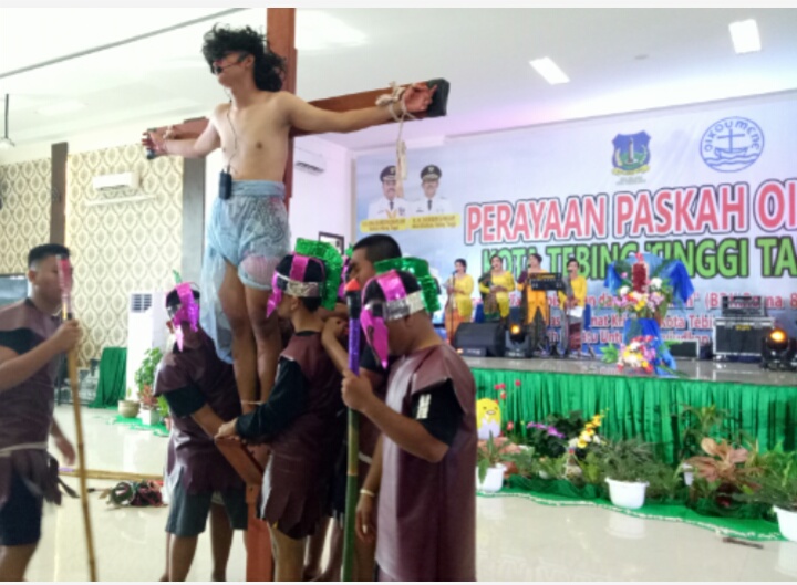 TEBINGTINGGI (mimbarsumut.com) – Perayaan Paskah Oikoumene Kota Tebingtinggi yang digelar, Minggu (08/05/2022) di Gedung Balai Kartini Jalan Gunung Leuser Kota Tebingtinggi, diawali jalan salib atau Via Dolorosa (Jalan Penderitaan).
