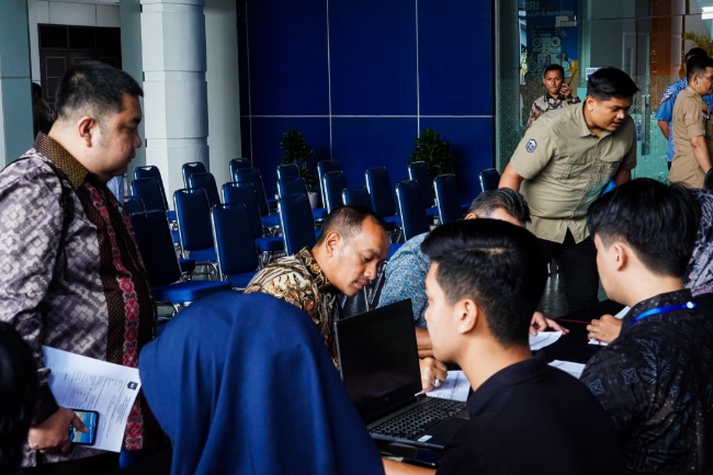 Terdapat enam meja registrasi yang dikelompokkan berdasarkan wilayah. Pemeriksaan hari ini digelar dalam tiga sesi untuk 239 kepala daerah terpilih.