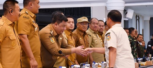 Bupati Samosir Vandiko T Gultom didampingi Kadis Kominfo Immanuel Sitanggang dan Kepala Bapperinda Rajoki Simarmata hadiri Rapat Koordinasi (Rakor) Percepatan Rehabilitasi dan Rekonstruksi Pasca Bencana yang langsung dipimpin Menteri Dalam Negri RI Tito Karnavian yang juga selaku Ketua Satgas Pemulihan Bencana Sumatera, di Aula Raja Inal Siregar, Kantor Gubernur Sumatera Utara (Sumut), Senin (12/1/2025).
