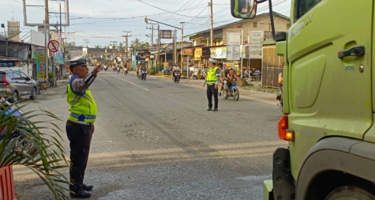 BATUBARA (mimbarsumut.com)- Personil Sat Lantas Polres Batubara melaksanakan kegiatan pengaturan lalin dan