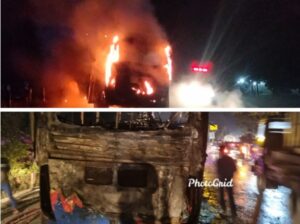 SIMALUNGUN (mimbarsumut.com) – Satu unit bus pariwisata yang mengangkut 42 pelajar terbakar
