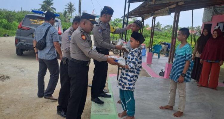 Kapolsek Labuhan Ruku dam personil membagikan sembako kepada anak Panti Asuhan Darul