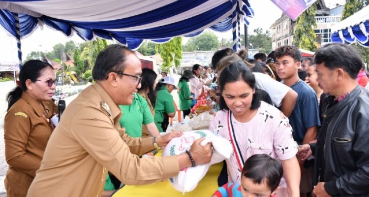 SAMOSIR (mimbarsumut.com) – Warga Pangururan tampak antusias mengantri untuk mendapatkan sembako di