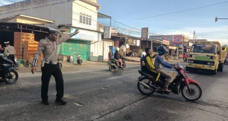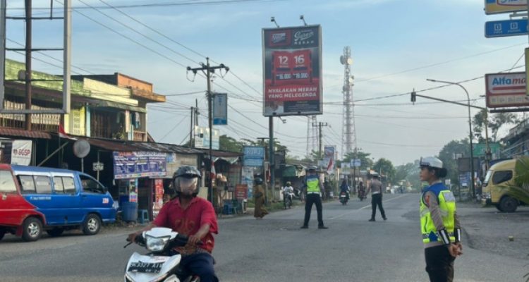 BATUBARA (mimbarsumut.com)- Personil Sat Lantas Polres Batubara melakukan pengaturan lalulintas, Sabtu (23/8/2025)