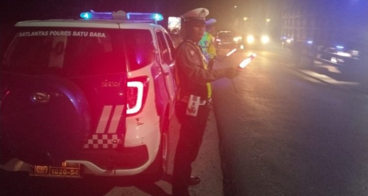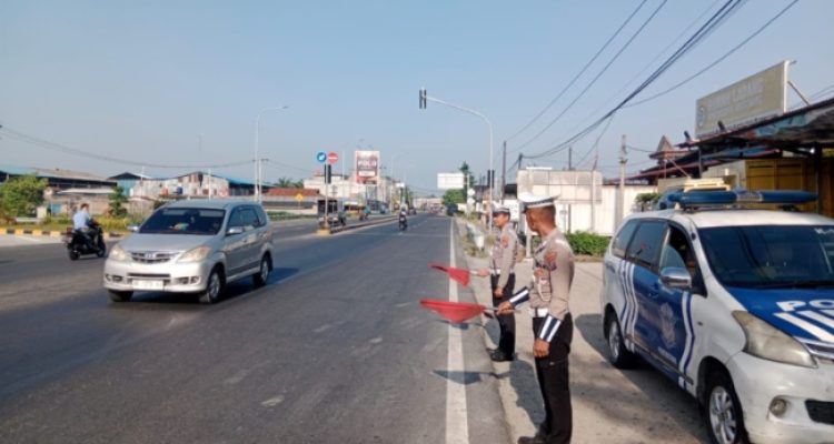 BATUBARA (mimbarsumut.com) –Personil Sat Lantas Polres Batubara laksanakan patroli kibas bendera di