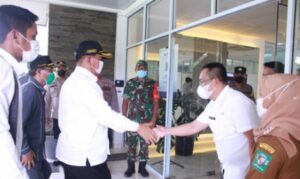 SIMALUNGUN (mimbarsumut.com) -Bupati Simalungun Radiapoh Hasiholan Sinaga meninjau jembatan di Kota Perdagangan