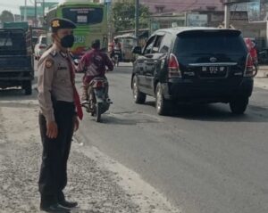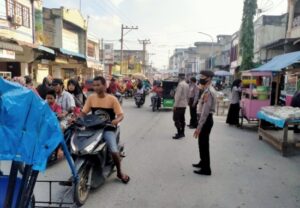 BATUBARA (mimbarsumut.com) – Personil Polsek Indrapura Polres Batubara laksanakan pengamanan Pasar Tumpah di