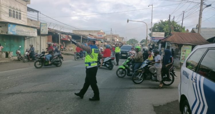 BATUBARA (mimbarsumut.com)- Personil Sat Lantas Polres Batubara kembali melaksanakan pengaturan lalin, Rabu
