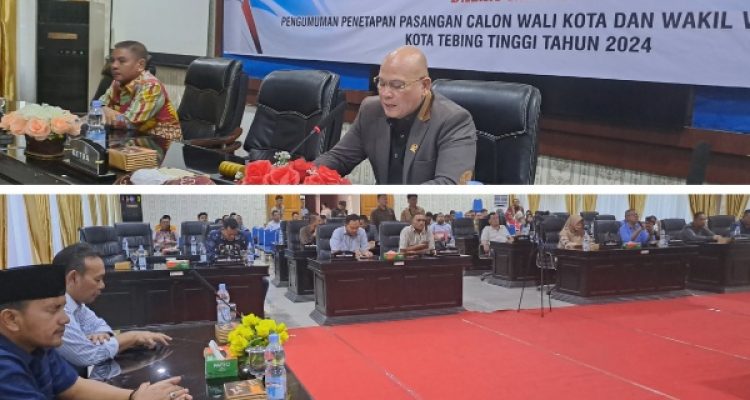 TEBINGTINGGI (mimbarsumut.com) – DPRD Tebingtinggi menggelar rapat pleno pengumuman penetapan pasangan calon
