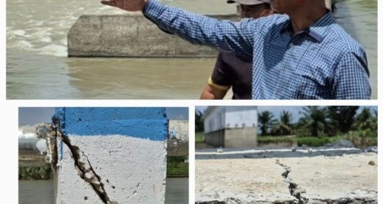 BATUBARA (mimbarsumut.com)- Keretakan pada perbaikan tanggul Sei Dalu-Dalu di Kab. Batubara yang