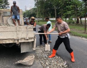 TEBINGTINGGI (mimbarsumut com) – Patut diapresiasi, Polisi ‘Samosir Bersaudara’ menutup jalan berlubang