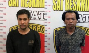 Dua personil Polsek Indrapura foto bersama dengan Sat Pam Bank Sumut Kebun