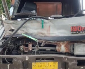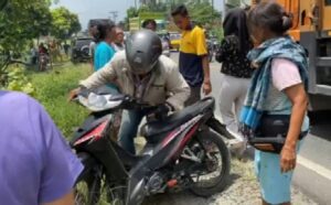 BATUBARA (mimbarsumut.com) – Bonceng tiga naik sepeda motor, jatuh setelah menabrak tumpukan