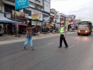TEBINGTINGGI (mimbarsumut.com) – Sat Lantas Polres Tebingtinggi melaksanakan pengaturan lalu lintas (Strong
