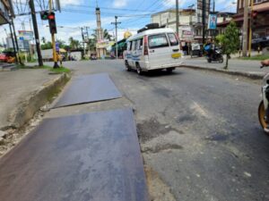 TEBINGTINGGI (mimbarsumut.com) – Kondisi Jalan Diponegoro tepatnya di simpang traffic light (lampu